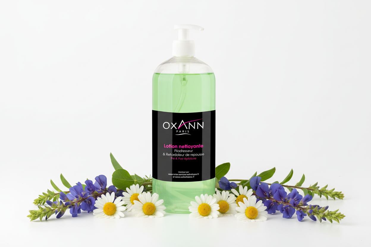 La lotion épilatoire de la marque Oxann est une lotion nettoyante pré et post épilation à la fois pilodresseur et retardateur de repousse du poil.